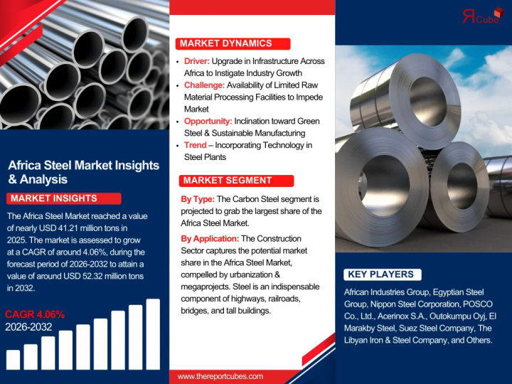 The Report Cube has released its latest study, Africa Steel Market Size and Research Report 2032,” offering comprehensive insights. The report provides detailed analysis on market trends, competitive landscape, regional performance, and key segment breakdowns.